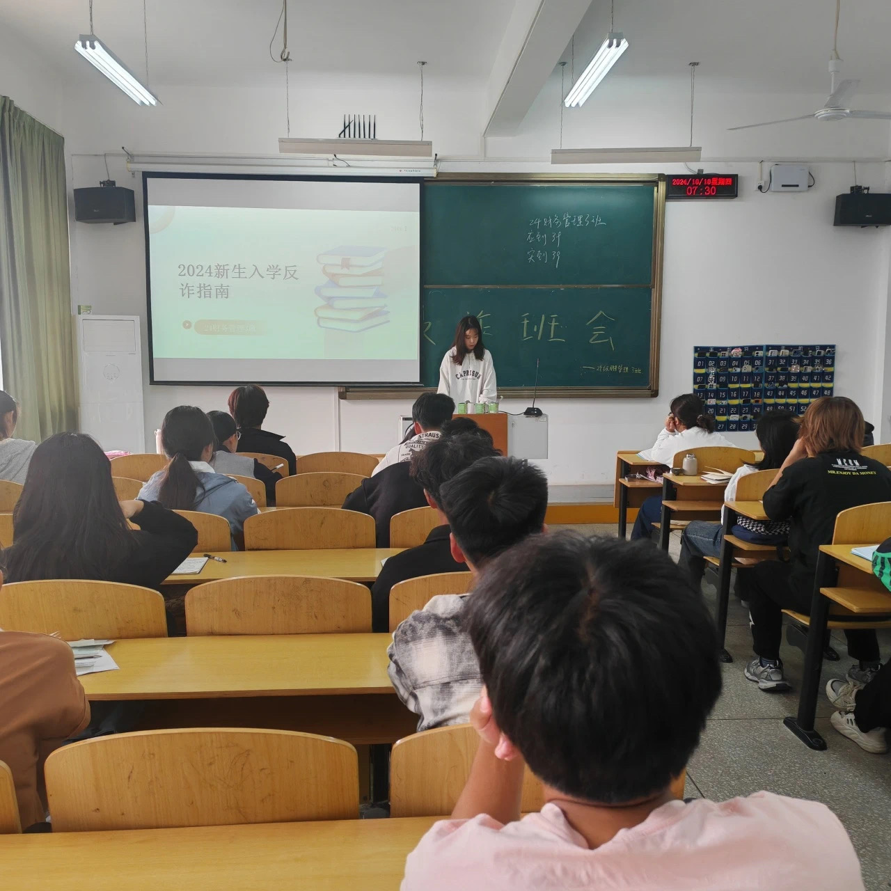 各班班长针对当前常见的诈骗类型、特点以及防范措施进行了详细讲解,并带领同学们一起总结出了识诈技巧,牢记“三不一要”:不轻信陌生信息,不透露个人信息,不随意转账汇款,要及时报警求助。保持警惕,守护财产安全。还通过案例分析、互动问答等形式,使同学对诈骗有了更加清晰的认识。