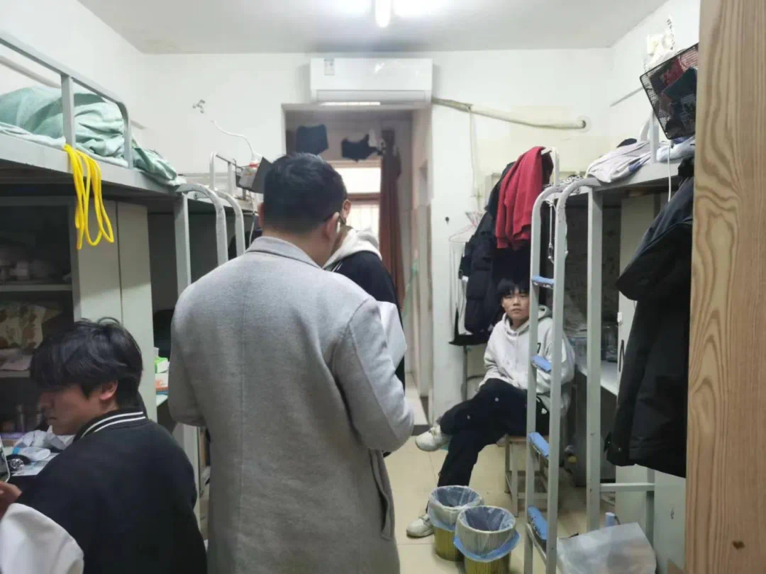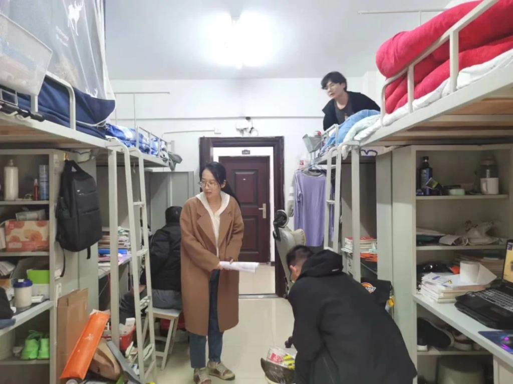 本次重点检查学生寝室是否存在使用大功率电器,是否养宠物,寝室是否干净卫生,是否存在消防安全隐患等问题。在检查过程中,检查组认真了解了学生的生活情况并记录了学生们关于宿舍生活方面所反馈的一系列问题,同时检查组还向学生宣传了一些防电信网络诈骗的知识,以及关于交通安全,防范火灾等安全知识,来提高同学们的安全防范意识。