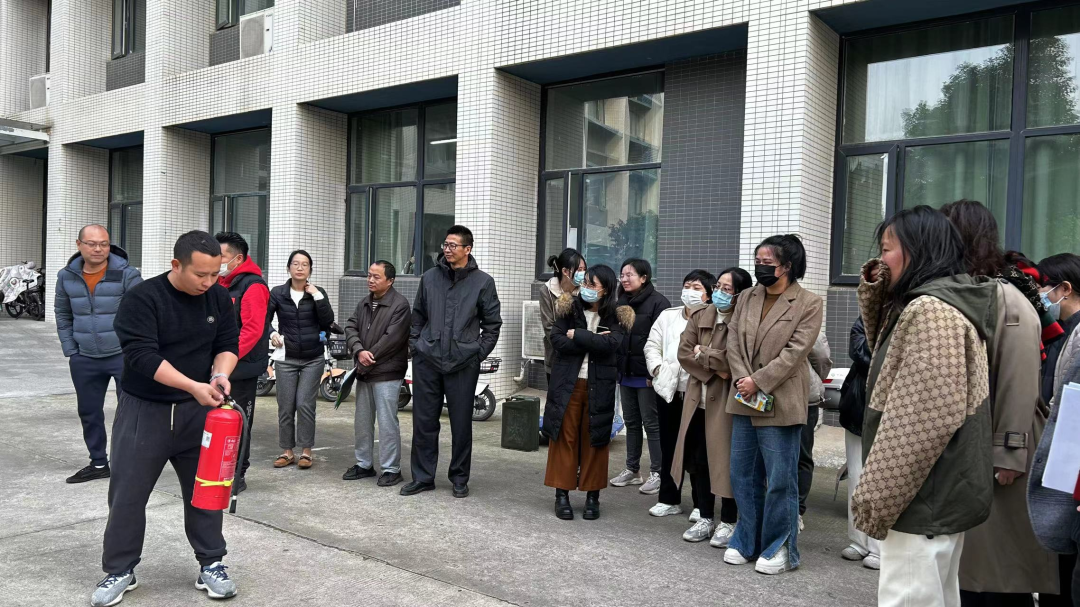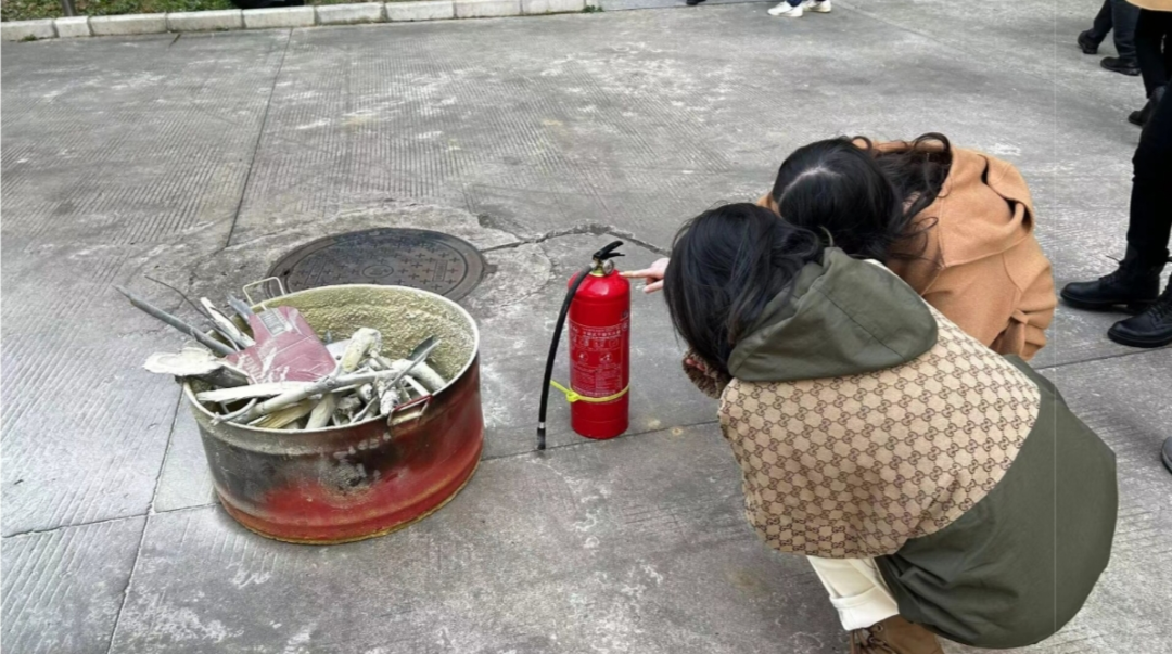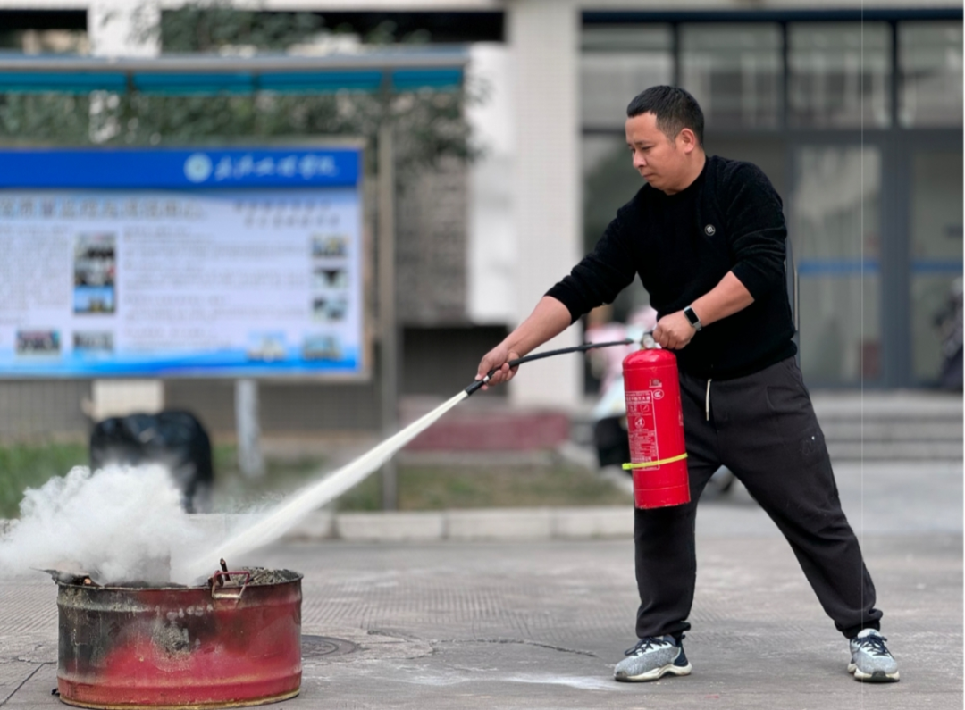 首先邓剑龙老师针对消防安全的实际情况,结合在工作和生活中用电、用火的知识,介绍了事故发生的原因及所造成的危害情况,详细讲解了发生火灾后的自防、自救、逃生技巧。然后亲自示范消防栓的正确使用方法。而后并向在场的老师介绍并展示干粉灭火器等消防工具的使用方法和注意事项。在火势初起的时候,先检查灭火器的指示针是否指在安全位置,在将保险栓拔掉后充分摇匀干粉灭火器。将喷嘴对准火源根部,邓剑龙老师示范后,各位老师踊跃尝试使用干粉灭火器。