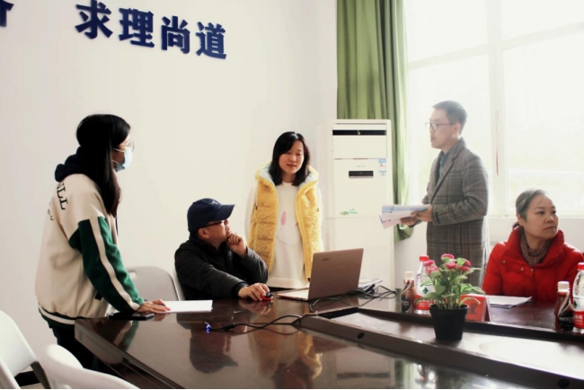 beat365中国官方网站常务副院长张蕾、教学副院长刘炫、党总支书记兼行政副院长朱启贵携学院教学督导刘肇宇、贾洁和教学秘书徐晓飞、张玮嘉,教师代表祝黎敏接待教学检查组。
