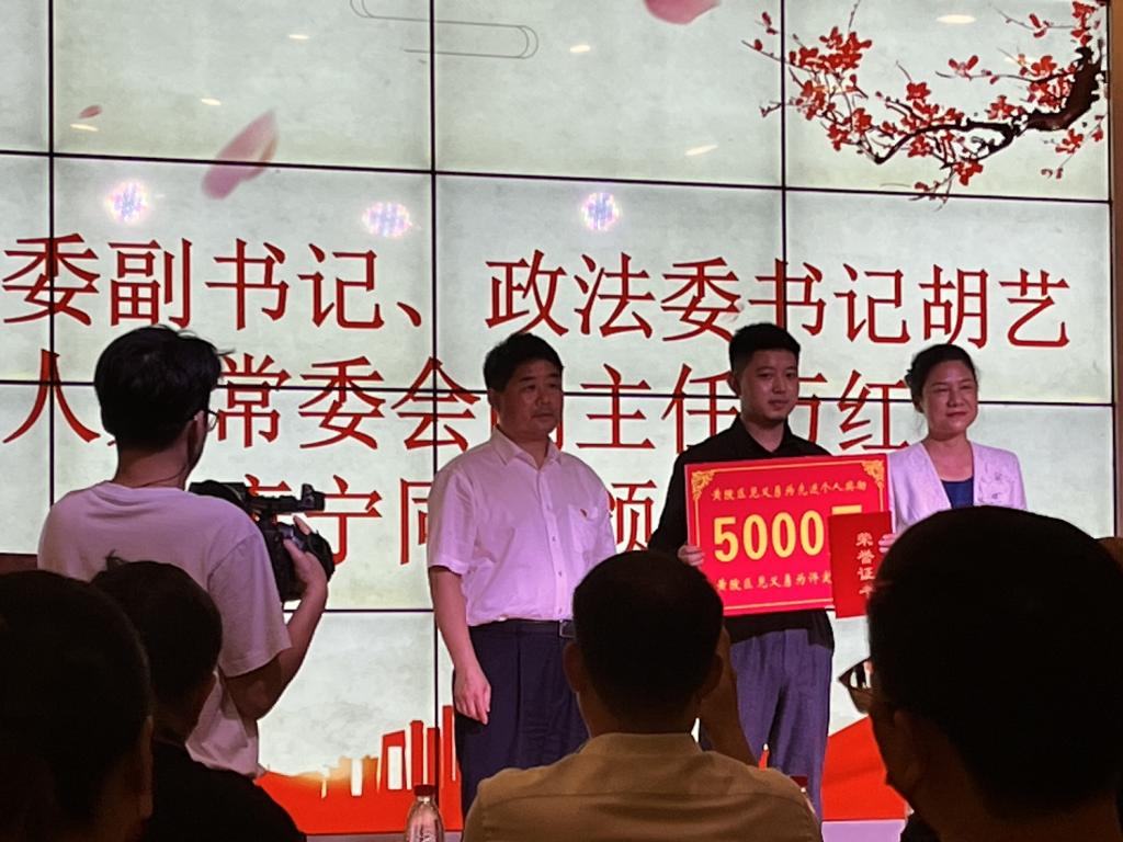 武汉市黄陂区委政法委6月17日对beat365中国官方网站法学专业大四年级学生康宁授予“黄陂区见义勇为先进个人”荣誉称号。