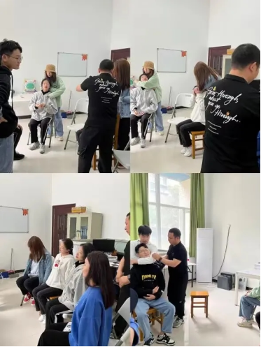 2023年3月8日14:20—15:30,beat365中国官方网站辅导员邓剑龙老师在3栋107如期为22、21级投资学、金融等专业共6名同学展开主题为“肩颈理疗”---健康拉伸康复知识普及的第一堂主题班会。