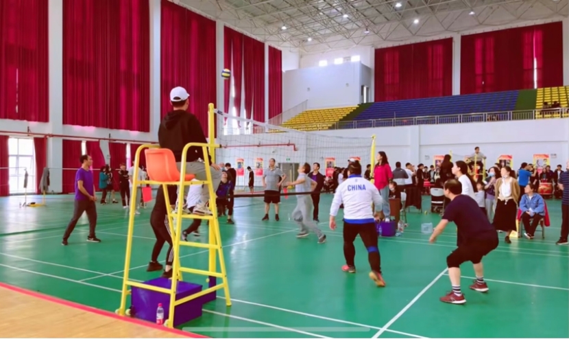 校教职工运动会赛场上,老师们在双腿夹球接力、滚铁环、集体八字跳绳、飞镖、气排球等项目中同台竞技,慧赛趣玩。个个当仁不让,享受着运动过程的快乐,赛场上笑声不停,加油声不断。