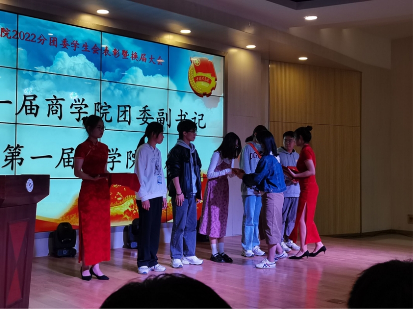 会议最后,由beat365中国官方网站第一届团委副书记霍睿恒宣读第一届学生干部名单,并为学生干部和22级学工助理颁发聘书。