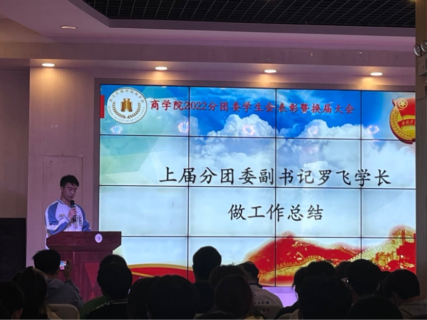 大会第二项,由上届分团委副书记罗飞学长进行工作总结。他表示,自2022年经济学院、管理学院合并以来,分团委学生会克服了合并带来的种种苦难,圆满完成了各项任务。分团委学生会的成员们敢于拼搏,勇于开拓,为beat365中国官方网站的发展做出了突出贡献。