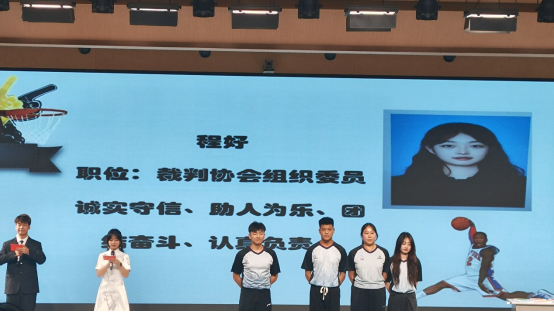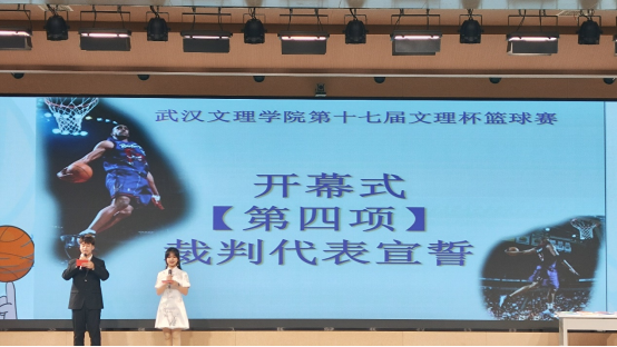 开幕式第四项,由裁判员代表宣誓,表示“友谊第一,比赛第二”是我校举办赛事的一贯宗旨,并承诺将严格遵守比赛规则,确保比赛的公平公正。球员代表也上台宣誓,表达了将顽强拼搏、赛出风格、赛出水平的决心。