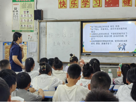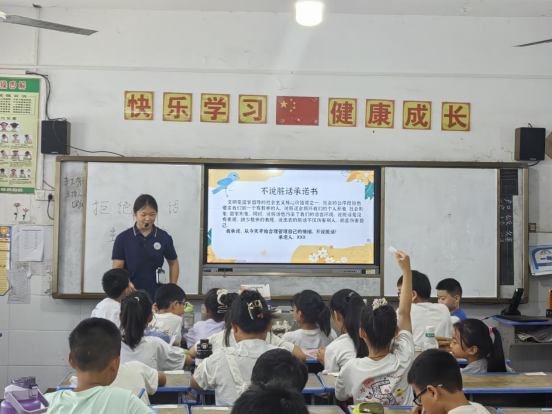 班会最后,老师和同学们一起许下承诺:“从今天起,管理好情绪,不说脏话,用良言暖人心,让文明成习惯。”同学们认真签下名字,不仅是对文明的向往,也是对成长的期许。老师还组织评选出“脏话监督员”,让大家互相提醒、携手进步,让文明之风吹遍班级角落。
