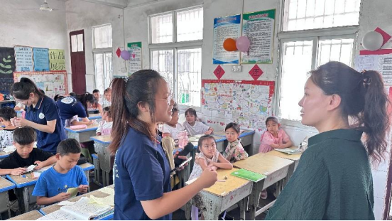 老师们详细询问了志愿服务队的工作进展与生活情况,对队员们扎根基层、奉献社会的精神给予了高度肯定,同时,也鼓励志愿者们珍惜机会,在服务中收获成长,用行动践行志愿精神。领导的关怀为队员们注入了新的活力,大家将以更加饱满的热情投入"七彩假期"课程,用知识与温暖陪伴乡村儿童成长,以实际行动践行青春担当。