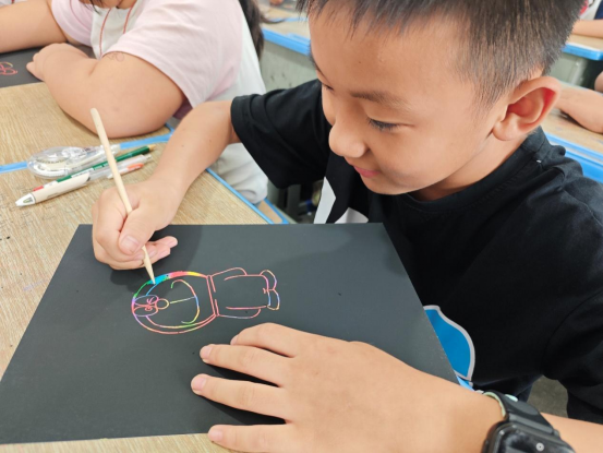 在手工课上,同学们全神贯注地盯着志愿者老师手中的手工作品,手中的衍纸、剪刀、胶水等工具也在灵活舞动。讲解结束后,同学们都热情地分享自己的创意和技巧,教室里满是大家手工的身影和大家小声交流的讨论声,大家相互学习、互相帮助,不仅培养了同学们的动手能力、创造能力和想象能力,也培养了同学们的耐心和专注力以及其自信心和成就感。