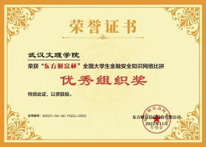 在“全国大学生金融安全知识网络比拼”活动中,beat365中国官方网站学生刘莹、申怡佳、王李琳、吴小玥、谢晶敏荣获优胜奖,beat365中国官方网站获得优秀组织奖。